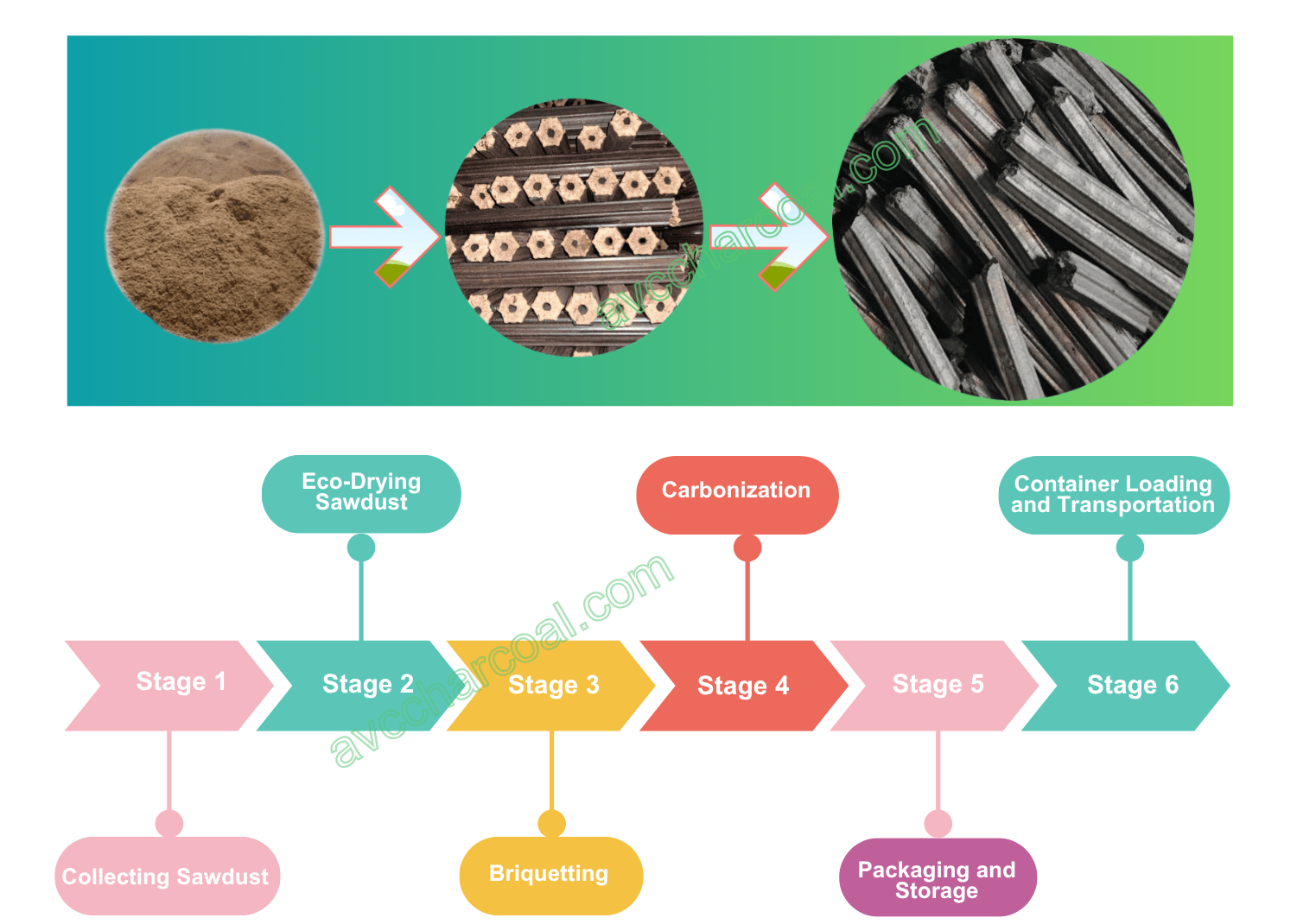 The production of high-quality sawdust charcoal briquettes is a rigorous process that transforms raw wood by-products into premium, eco-friendly fuel. To ensure superior hardness, high calorific value, and smokeless performance, the manufacturing flow must adhere to strict technical standards at every turn. Our production line is optimized for sustainability and efficiency, utilizing advanced heat-recovery technologies to minimize environmental impact. Specifically, the transformation from raw sawdust to the finished export-grade charcoal involves the following six essential stages: